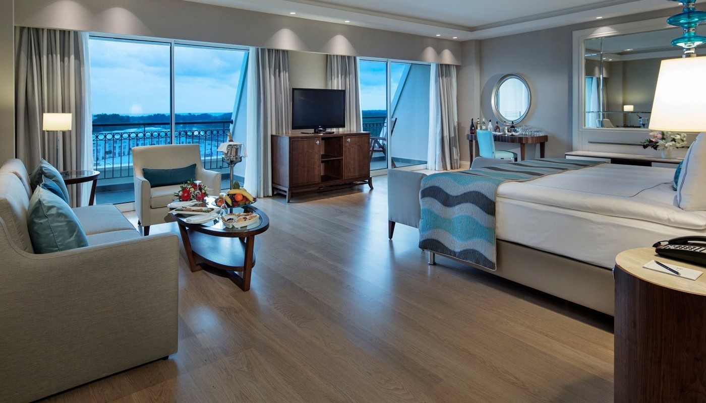 -Deluxe oda golf sahasi veya akarsu manzaralidir. -Oda 70 m2 genisligindedir. -Oda tipinde iki adet banyo mevcuttur biri küvetli biri dusakabinlidir. -Oda zemini laminant parkedir. -Oda da 1 adet çift kisilik yatak bulunmaktadir. -Oda da balkon mevcuttur. -Oda tipi ana binada yer almaktadir. -Oda tipinden tesisde 100 adet bulunmaktadir. –Oda içerisinde giyinme odasi mevcuttur. -Odanin havuza direk giris özelligi yoktur.